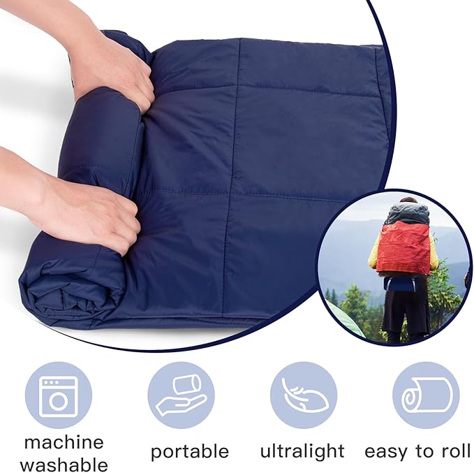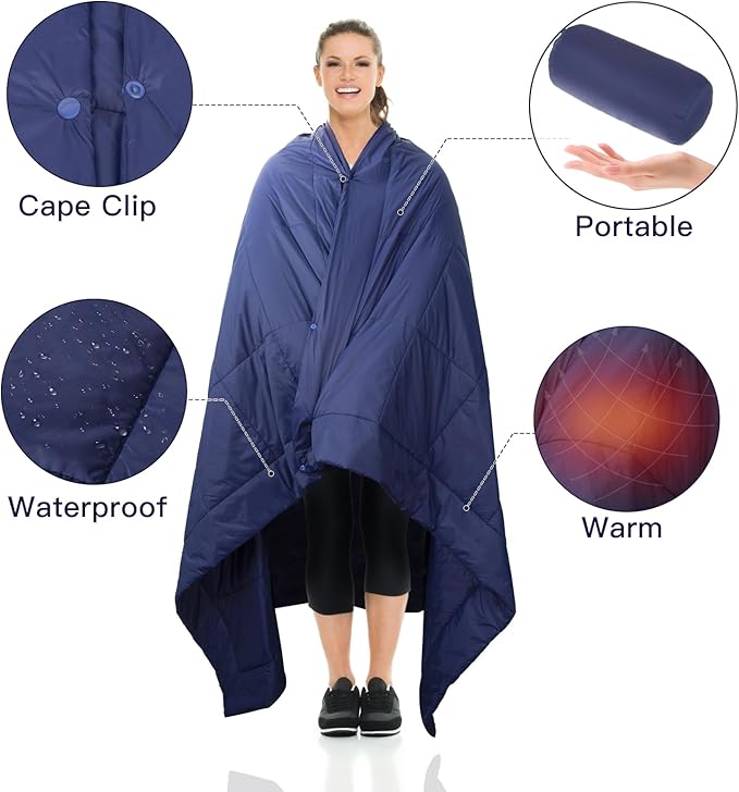 Camping Blanket, Outdoor Windproof Down Camping Blanket, Thicker Water Resistant Lightweight Camping Blanket, Portable, Wearable, Warm for Camping, Traveling, Hiking, Extra Large (79 "x 55"), Navy