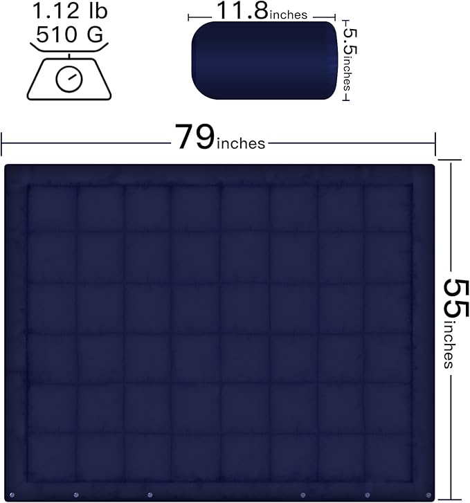 - 【Easy to Carry】The package size is 5.5 "x 11.8", which is only 25% of the size of the sleeping bag. Measuring 78 "x55" when unfolded, it is large enough for a double bed. At just 1.12lb, it weighs less than a bottle of water. The storage bag has adjustable buttons for easy carrying