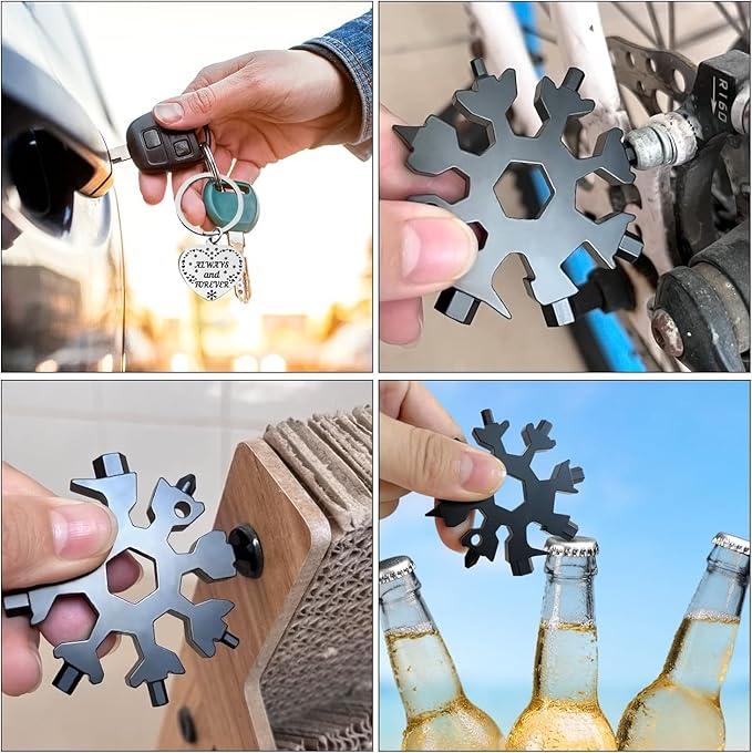 - 【18 in 1 Snowflake Multitool】: The 18-in-1 gifts for men dad can be used as a Philips screwdriver, bicycle repair kit, slotted screwdriver, bottle opener, cross/flathead screwdriver, allen key, key Hole......