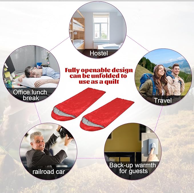 - Suitable for 4 Seasons and Warm or Cold Weather: our adult sleeping bags can keep warm in various outdoor activities in spring, summer, autumn, and winter; They are weather resistant design to keep you warm even in extreme conditions and prevent you from any dampness, you can get the comfortable sleep you need after a day of adventurous outdoor camping, backpacking, hiking, or travel
