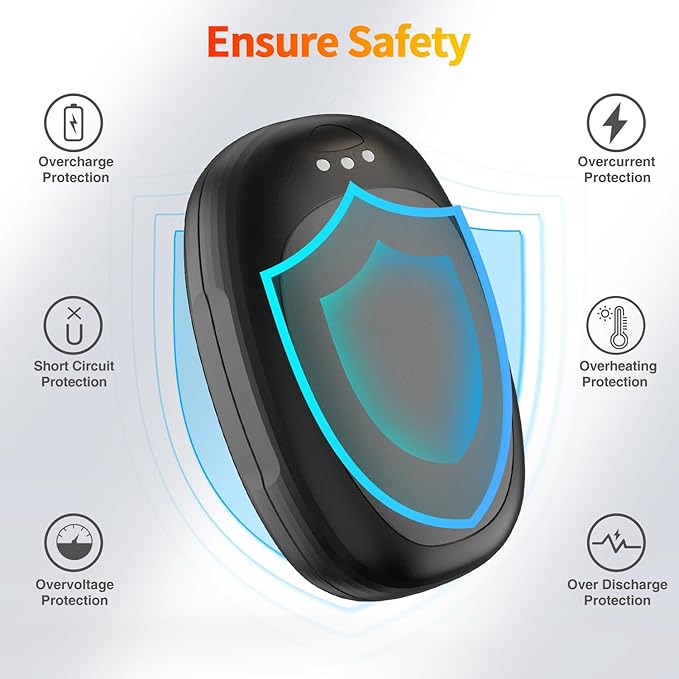 - 【2S Quick Heating Up】 Electric hand warmer with 3 modes of temperature, they are low temperature(35-40℃), middle temperature(40-45℃), high temperature(45-50℃) for you to choose. It will heat up in 2 seconds and provide warmth for you after long press the button.