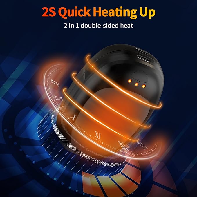 - 【Upgraded Hand Warmers 2 Pack】 Rechargeable hand warmers designed with double-sided heating, you can merge them to get one hand warmer, or separate it to have two reusable hand warmers, which can provide warmth for your both hands. It is palm size and ultra light, you can easy to put into your each pocket.