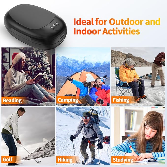 - 【Long Battery Life & Rechargeable】 Handwarmers built-in 2000mAh x 2 rechargeable battery, which can provide 6-10 hours of continuous heating each pack, perfect for all-day outdoor and indoor activities. Such as camping, hiking, fishing, skiing, walking, hunting, playing golf, reading, watching TV, etc.(Notice: Not support power bank function)