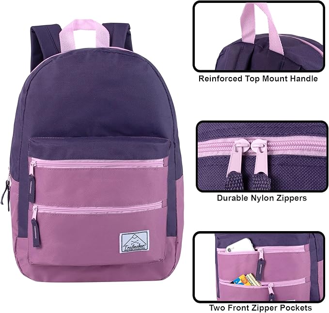 - DOUBLE ZIPPERS: Easy grip nylon & metal zippers make it twice as easy to open & close your bag in a rush between classes or airport gates, & gives you multiple places to hang key chains to showcase your taste & style