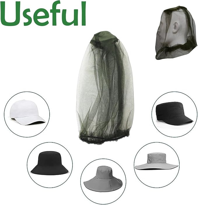 - Durable Material - This mosquito head netting is made of 100% nylon,breathable fabric keeps you form mosquitoes and any annoying bugs but allows fresh air in and clarity of vision through the net,super easy to put on and take off.
