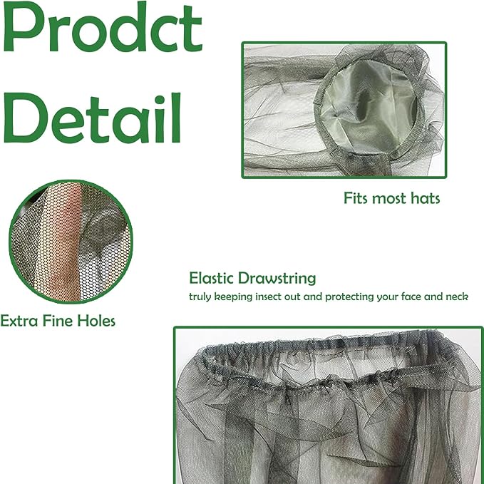 - Complete Protection - Our mosquito net comes with an elastic drawstring,and the neck drawstring pulls out from the bottom of the overhead net to tighten it around your neck, truly keeping insects out and protecting your face and neck. It can be used for any hat (wide or narrow brim).