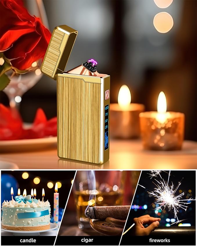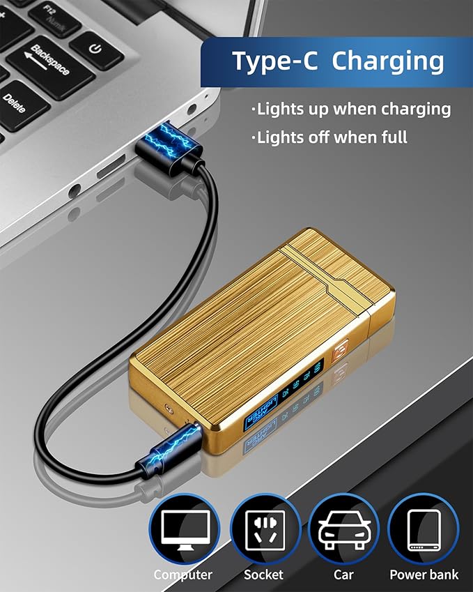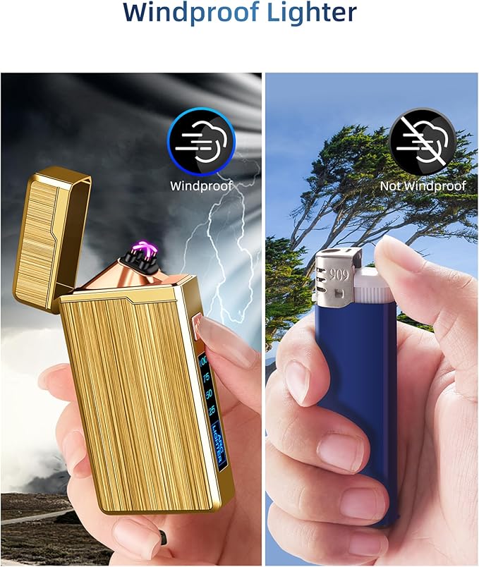 - WIND & SPLASH PROOF: The electric windproof lighter is butane free and no harmful chemical.The flameless lighter can ignite things under bad weather.