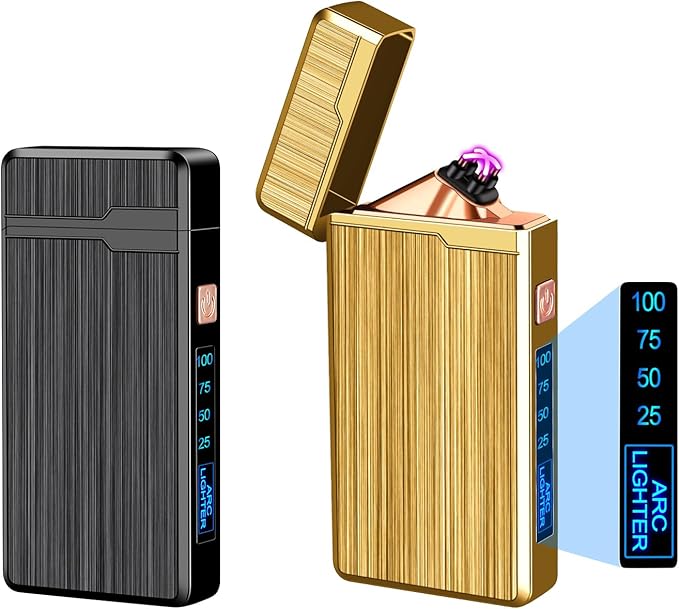 2 Pack Electric Lighter,USB Rechargeable Lighter, Plasma Dual Arc Lighter, Windproof Flameless Lighter, Pocket Metal Lighter with LED Battery Indication for Indoor Outdoor (Black&Gold)