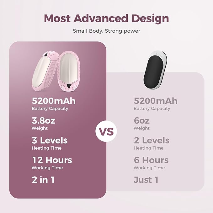 - Long-lasting Heating Than Ever - This electric hand warmer adopt a new heating scheme and battery, minimal weight and maximum lasting Heating, provide up to 12 hours of heat.