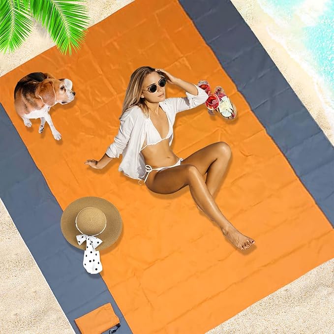 - 🏖️Sandproof Beach Blanket🏖️The sand won't stick to the material the surface of the beach accessories must haves, and can be easily brushed off. If wet you are able to easily sweep the sand off with your hands no problem.Please notice that the sand can't pass through the blanket.
