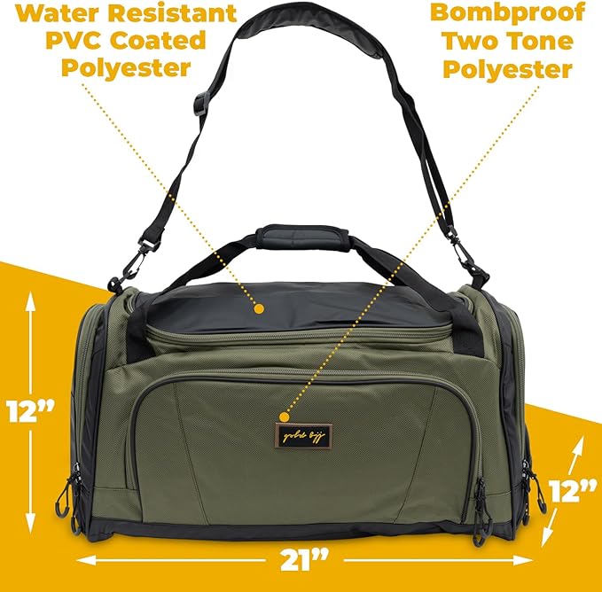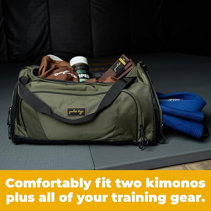 Gold BJJ Jiu Jitsu Duffle Bag - Waterproof Pocket for Sweaty Gi, Rashguard, or Shoes - The Perfect Duffel Bag for Martial Arts Gear, Boxing, MMA, and More