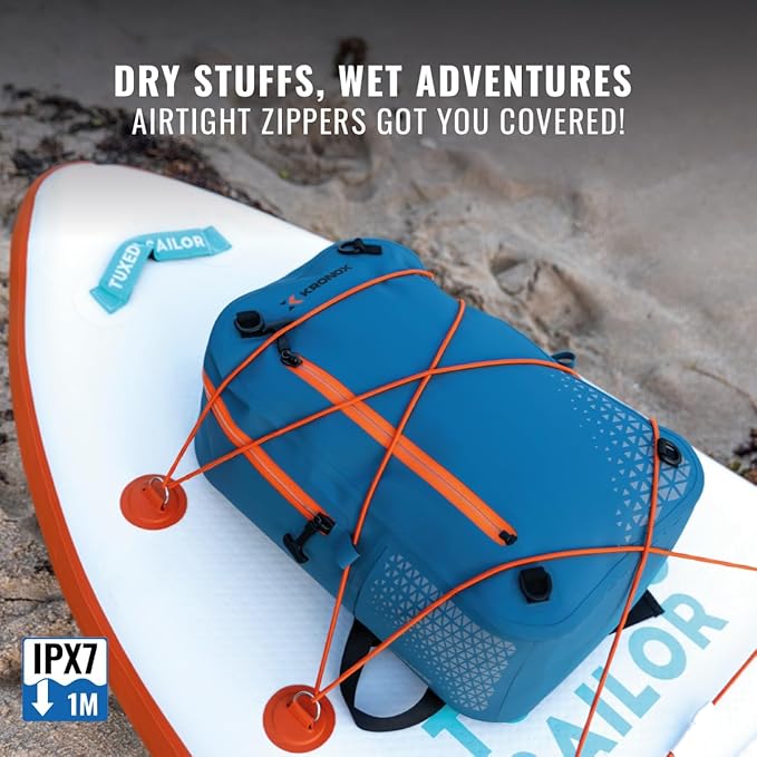 - Embrace Every Adventure, Worry-Free: Dive into your passions without a second thought. A 6-feet IPX7 submersible dry bag backpack ensures your essentials are protected, no matter the weather. Adventure awaits, and with KRONOX, you’re always ready.