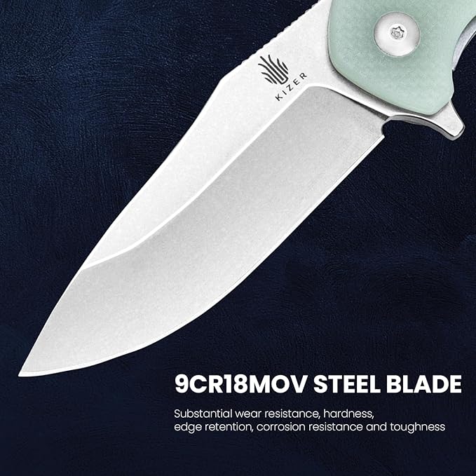 Kizer Yacht EDC Pocket Knife, 3 Inches Folding Knife with 9Cr18MoV Steel Blade, Jade Tactical Hunting Knife, Portable Survival Knife with G10 Handle with Clip, L3004A1