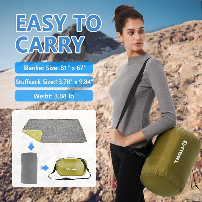 - EASY TO CARRY & STORAGE & CLEAN: Roll it into the stuff sack with a carry handle and shoulder strap which is in the size of 13.78''*9.75'', perfect to keep in a car for emergencies or take along while camping/sleeping in the car/attending fall season sports events because it is versatile, compact, and lightweight. Throw it straight into the washing machine. Just wash on a gentle cold cycle and tumble dry on a low heat.