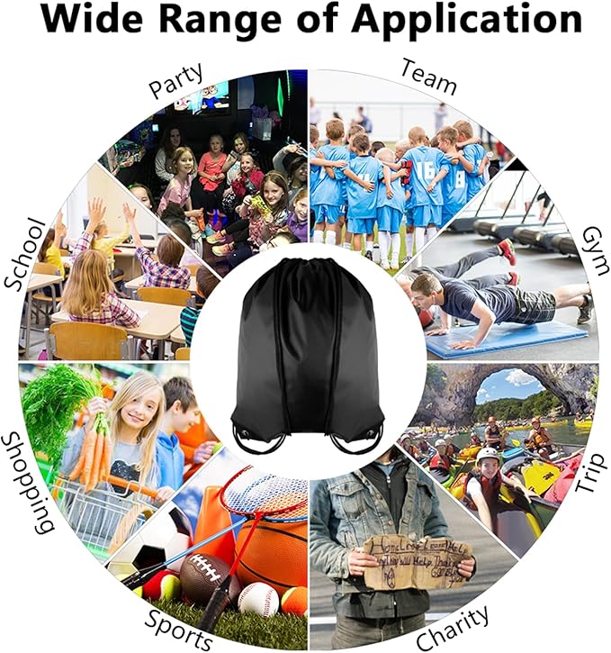 - Multipurpose for everyday usage: These cinch sack drawstring backpacks are suitable for various occasions, such as birthday parties, camping themed parties, pool parties, and you can also bring them with you when working, traveling, exercising, or even shopping at the supermarket. These bulk backpacks can also be used for home storage and can be shared with family and friends. These pull string bags can also be folded, making them very easy to carry.