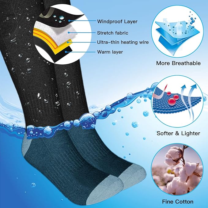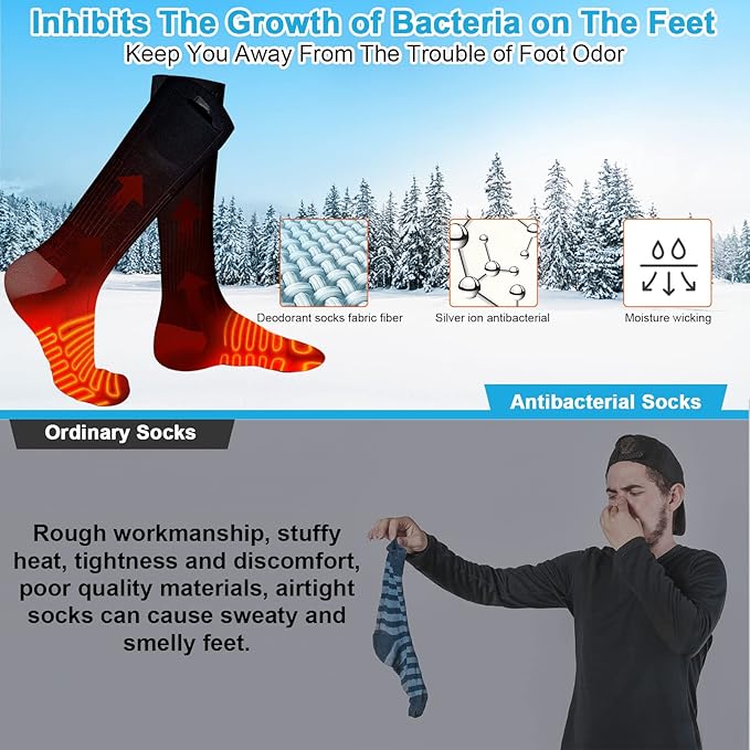 - ❆ [ Best Winter Gift ] Heated socks is very suitable for all indoor and outdoor activities, such as motorcycles, hunting, skiing, snowboarding, snowmobiles, biking, fishing, hiking, hunting, snow plowing, mountaineering, etc.Winter warm gloves are ideal gifts for men and women. Christmas, Thanksgiving, Mother's Day, New Year's Day.Heated socks are a good choice to bring them warmth in the cold winter.