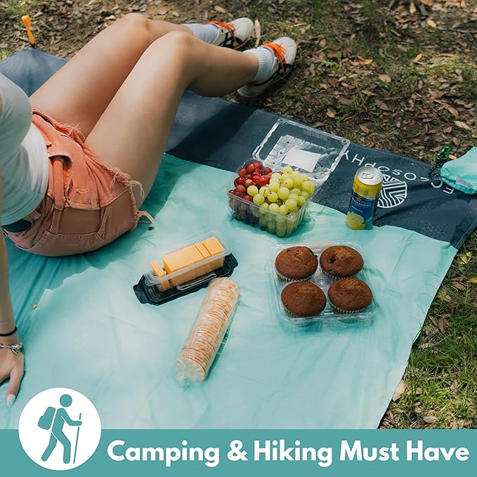 - ALL THE BELLS & WHISTLES ARE INCLUDED BECAUSE LIFE IS MEANT TO BE EASY! Your 55x60" camping tarp has corner pockets ideal for SAND STUFFING & ANCHORING the blanket at the beach. The loops & stakes are perfect when using this picnic blanket on soil. The zipper pocket is super cool & handy while the matching carry pouch & carabiner make it THE IDEAL TRAVEL ACCESSORY.