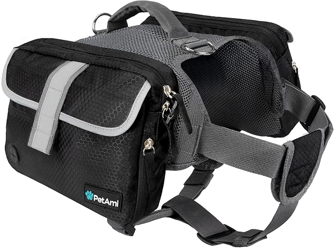 PetAmi Dog Backpack Saddle Bag for Medium Large Dogs, Dog Saddlebag for Dogs to Wear, Harness Saddlebag for Hiking with Reflective Safety Side Pockets, Vest Dog Pack for Camping Travel (Black, Large)