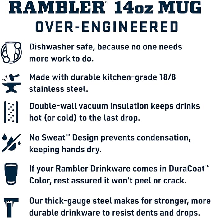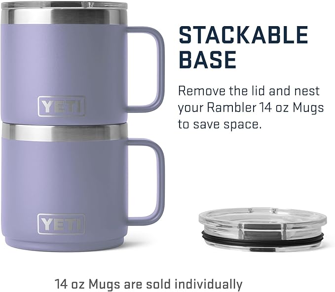 - STACKABLE BASE - Remove the lid and nest your Rambler 14 oz Mugs to save space