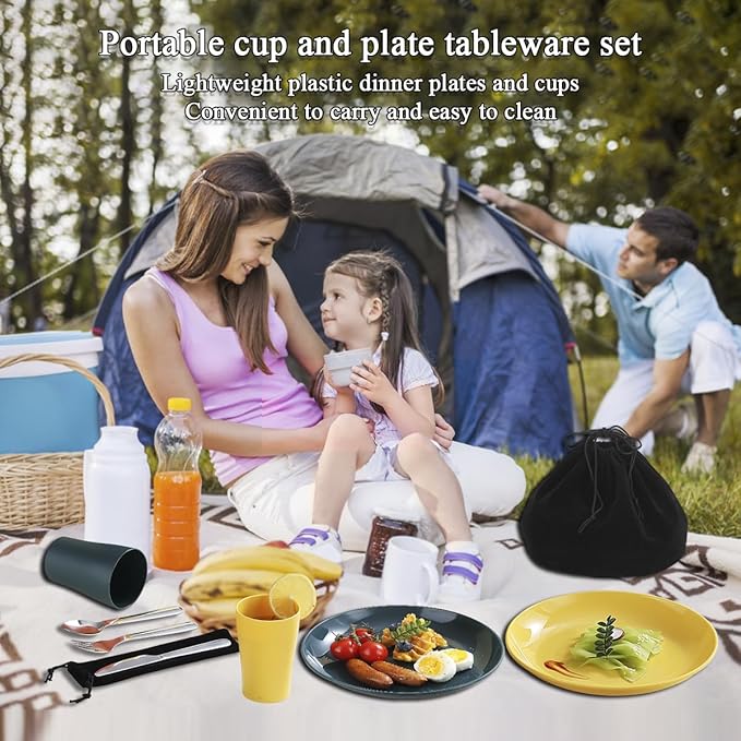 - HIGH QUALITY: The plates and cups of this camping set are made of pp material, BPA free, non-toxic and odourless. They are lightweight, unbreakable and sturdy, the stainless steel cutlery is made of high quality stainless steel, sturdy and durable.