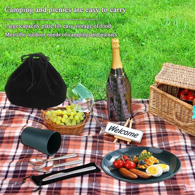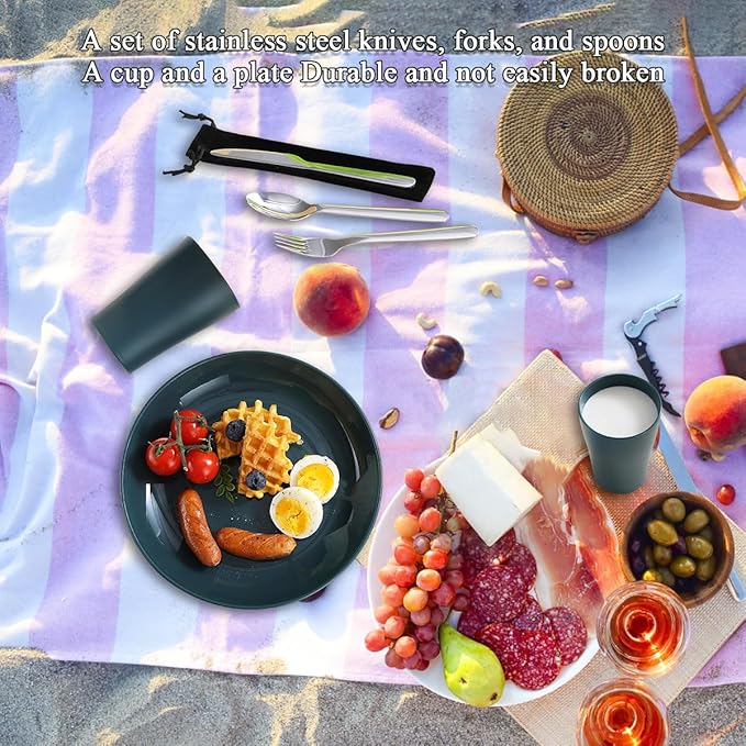 - HIGH QUALITY: The plates and cups of this camping set are made of pp material, BPA free, non-toxic and odourless. They are lightweight, unbreakable and sturdy, the stainless steel cutlery is made of high quality stainless steel, sturdy and durable.