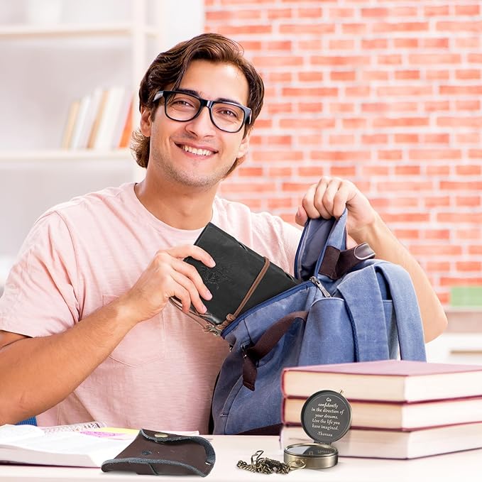 Kanayu 2 Pcs Compass Graduation Gift Compass with Stamped Leather Case and Leather Journal Notebook High School College Graduation Gifts for Him