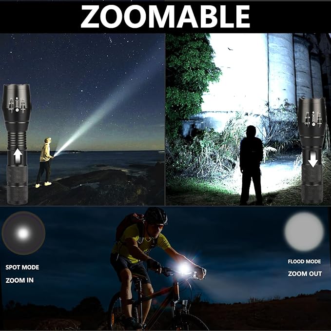- 【LONG LIFE BATTERY】Military flashlight One charge can be used for up to 8-10 hours in the long term, you never have to worry about running out of power and charging frequently. Works with 18650 lithium batteries and 3 AAA batteries.