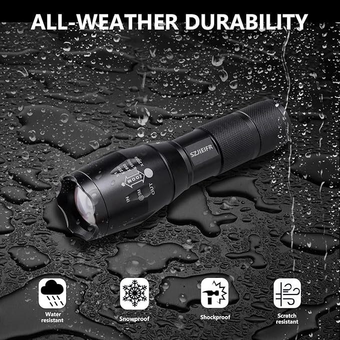 - 【DROP RESISTANT BODY】Handheld flashlight is a high-quality aluminum alloy barrel, daily waterproof, can withstand heavy rain, extreme cold, high temperature and other harsh environments. Very suitable for all kinds of outdoor sports.