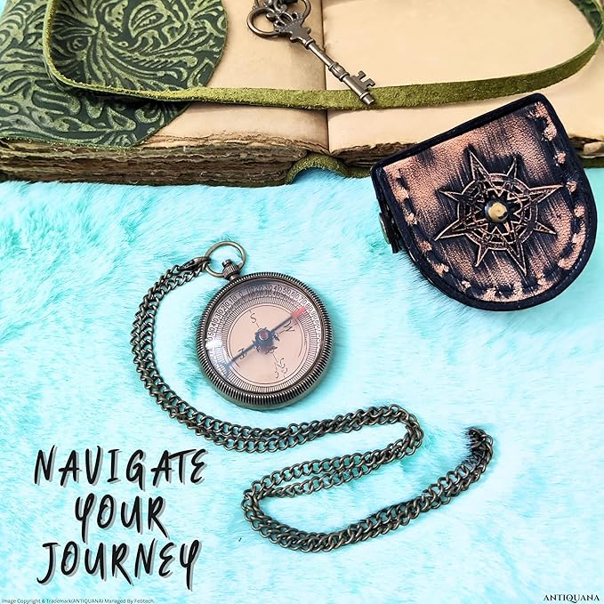 God is with You Wherever You Go Engraved Compass with Authentic Leather Case Brass Compass Directional Compass, Baptism Gifts for Boys & Girls, First Communion (BLC2)