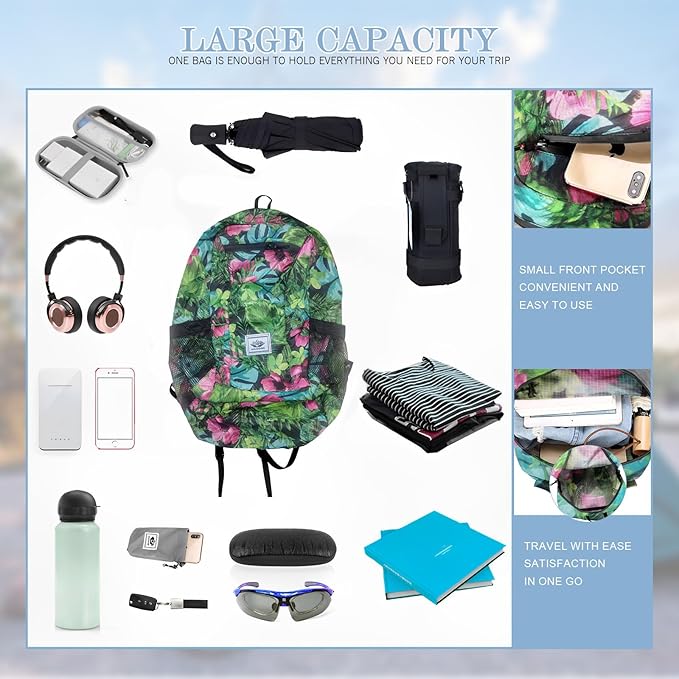- 【Applicable for Various Scenes】 Whether you're hitting the beach, the trails, or exploring a new city, our packable backpack is versatile for your adventures and easy to store in your luggage for day trips.