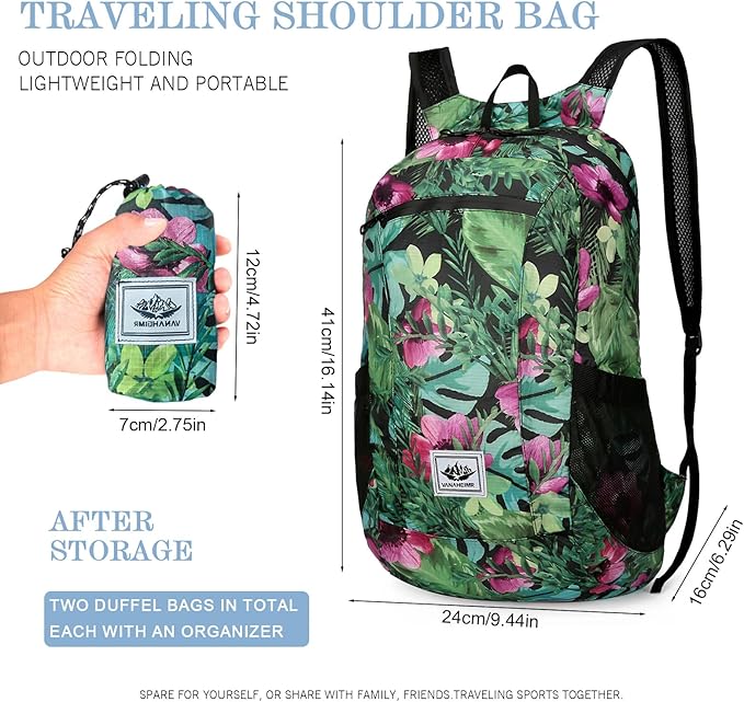 - 【Comfortable to Carry】 The adjustable straps and breathable back padding provide comfort for long walks. The set includes 2 day packs lightweight for women in blue and green flower patterns. A great option for people who love the outdoors.