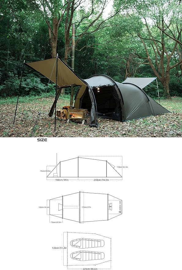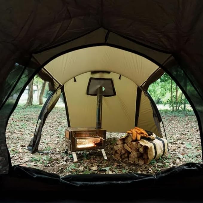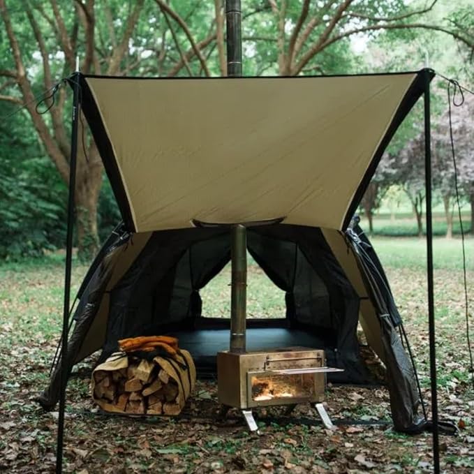 - 【Superior Detailing for Enhanced Performance】Experience superior detailing with reinforced stress points and a double zipper design, ensuring structural strength and water leakage prevention. The sturdy support poles, crafted from high-quality aluminum alloy, provide stability in diverse outdoor conditions. Plus, the convenient zipper allows for easy access to the woodstove, ensuring effortless operation during your outdoor adventures.