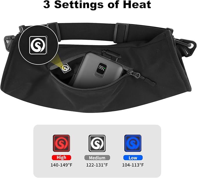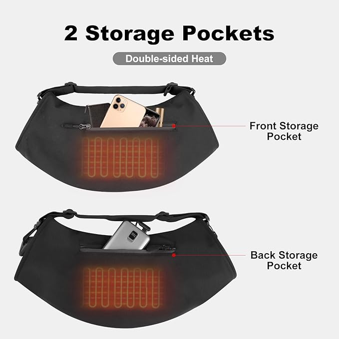 - 【Adjustable Heating Settings】Featuring dual-sided heating technology, our heated hand warmer pouch offers 3 heating settings represented by the colors red, white, and blue. With the vibration switch, the low-temperature setting reaches a cozy 113°F, the medium setting warms you up at 131°F, and the high setting delivers a toasty 149°F heat.