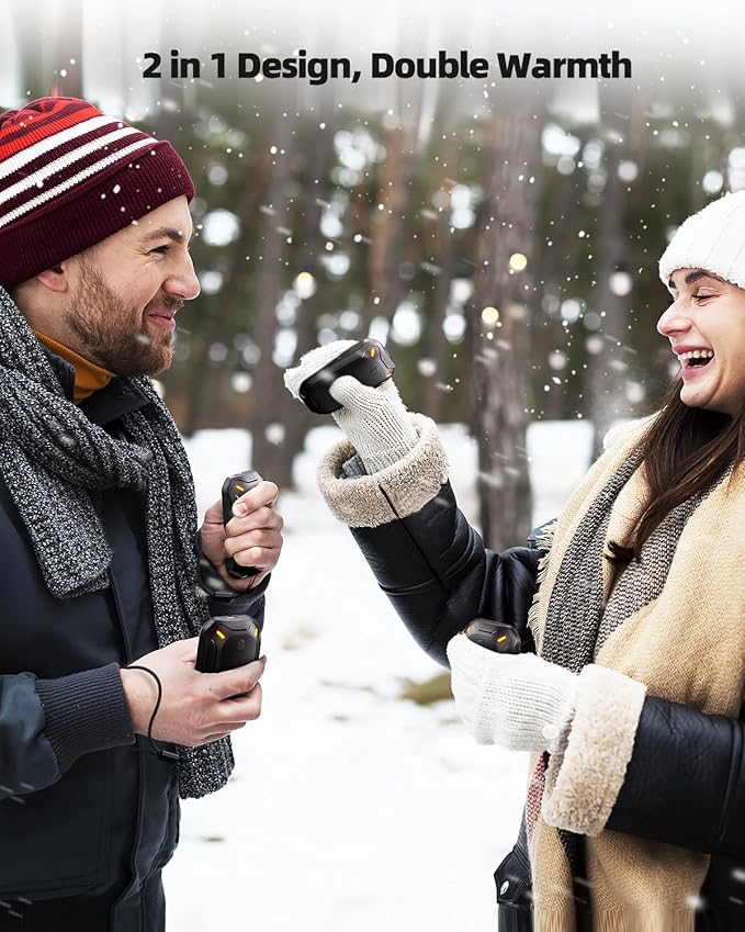 - ๐๐๐ฎ๐น ๐ ๐ฎ๐ด๐ป๐ฒ๐๐ถ๐ฐ ๐ฆ๐๐ฐ๐๐ถ๐ผ๐ป & ๐ฎ-๐ถ๐ป-๐ญ: The Twin Hand Warmers feature a built-in dual magnet system that effortlessly combines into a double-sided heating hand warmer. They can also be easily separated, allowing you to hold one warmer in each hand or share the warmth by giving one to your family or friend