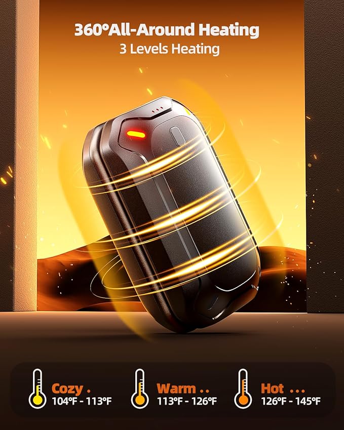 - ๐ญ๐ฎ๐๐ฟ๐ ๐ ๐ฎ๐ ๐๐ฒ๐ฎ๐๐ถ๐ป๐ด ๐ง๐ถ๐บ๐ฒ: 2Pack hand warmers have a total of 4000mAh battery capacity. One full charge provides up to 12 hours of continuous use, offering you warmth throughout the entire day. 3 temperature levels to for your choice, you can clearly see the temperature level and remaining battery power through the LED indicator light