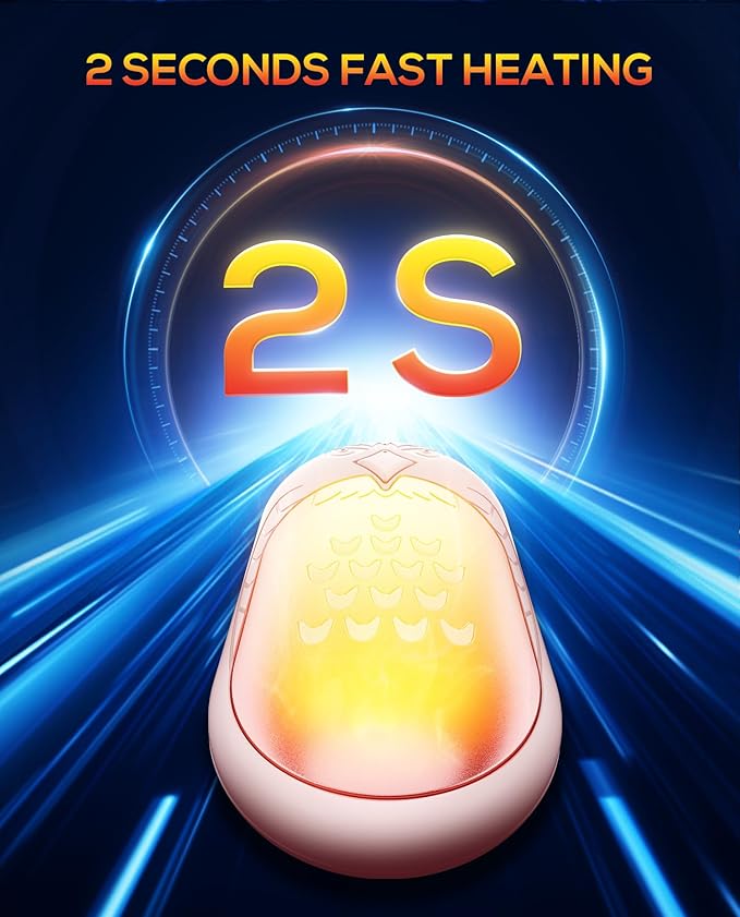 - 【2s Instant Heat & 3 Heat Levels】Say goodbye to cold fingers and long wait times. Featuring a premium chip control system, these electric hot pockets hand warmers deliver heat up to 130°F in just 2 seconds. With 3 temperature levels for stable, adjustable, and precise comfort heating. Give you quick relief from the cold and experience the healing power of heat therapy.