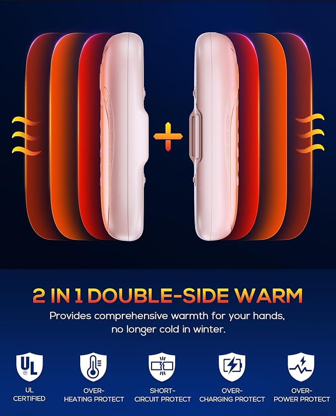 - 【High-Performance&Safety Certified】This hand warmer is made of advanced lithium batteries, aluminum, and ABS which are certificated with UL, CE, and FCC. The built-in intelligent protection system can provide protection against common problems such as power fluctuations, short circuits and overloads. It is flame-proof, explosion-proof and has no radiation, giving you peace of mind.