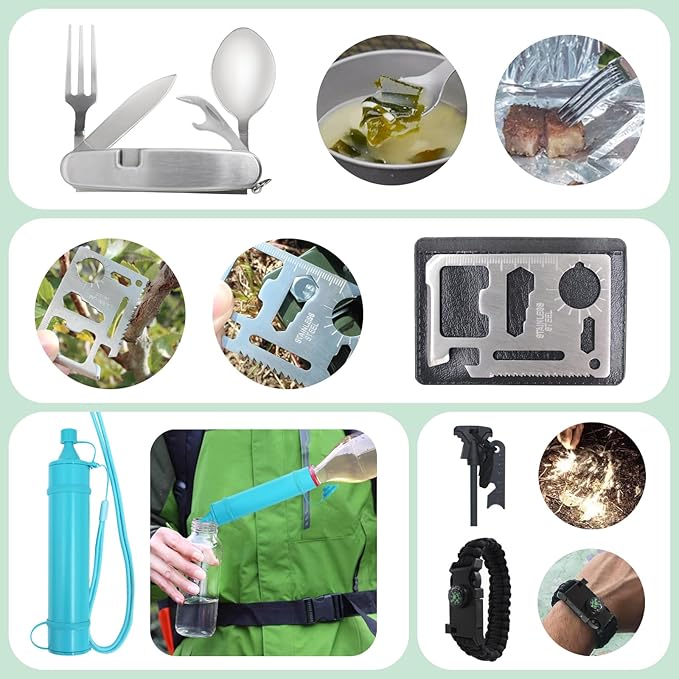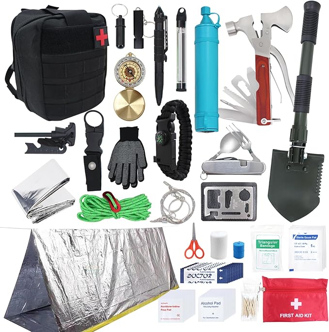 - 💪【Expert Survival Kits】 Owning a survival kit is a crucial measure to ready and safeguard yourself and your family for unexpected situations. This is a thorough, cutting-edge, top-notch survival first aid kit, comprising expert survival tools and necessary first aid provisions, which can aid a family or a circle of companions in crises. Ideal for camping, trekking, backpacking, fishing, adventurous expeditions, and other outdoor pursuits.