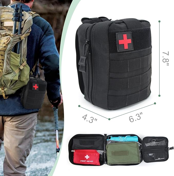 - 💪【Perfect gifts for Men Women Kids】This survival first aid kit is great for tactical doctors, military personnel, firefighters, first aid personnel, hikers, campers, outdoor sports enthusiasts, etc. It's a cool gadget almost suitable for everyone. If you are looking for gifts, you must try the survival first aid kit. It must be cool gifts for men women who love outdoor activities, great gifts for teen boys scouts or kids who interested in adventure.