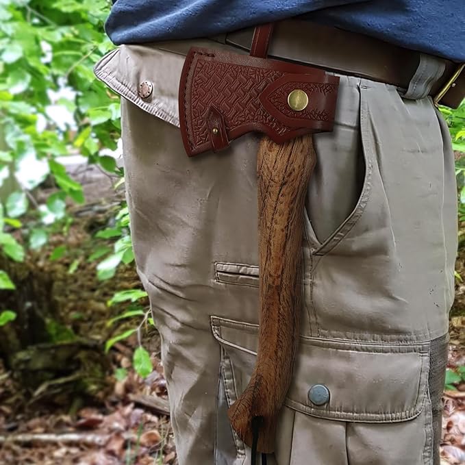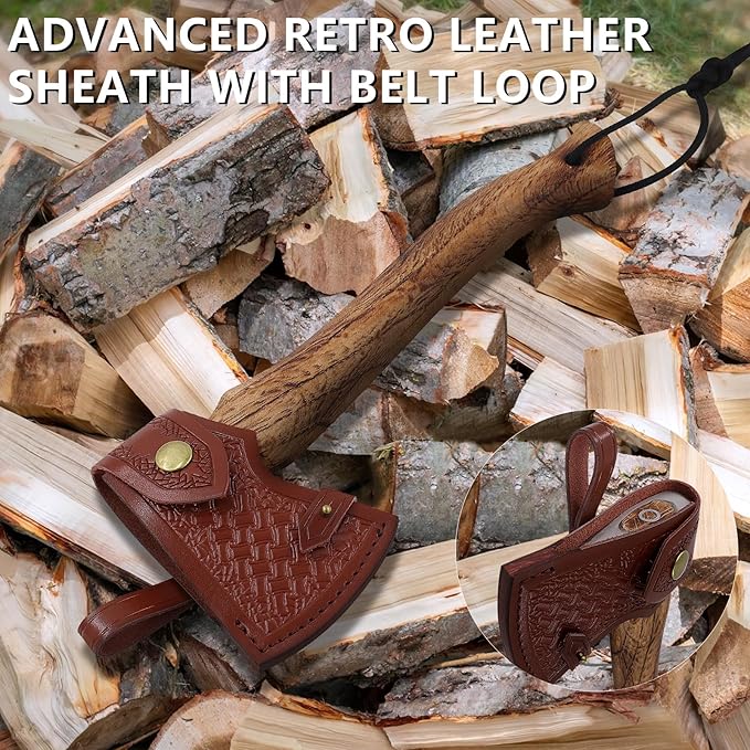 - 【Exquisite Hatchet With Retro Sheath】This camping hatchet comes with a retro leather sheath that not only provides protection for the sharp blade but also facilitates storage and carrying, while adding a premium look and feel.