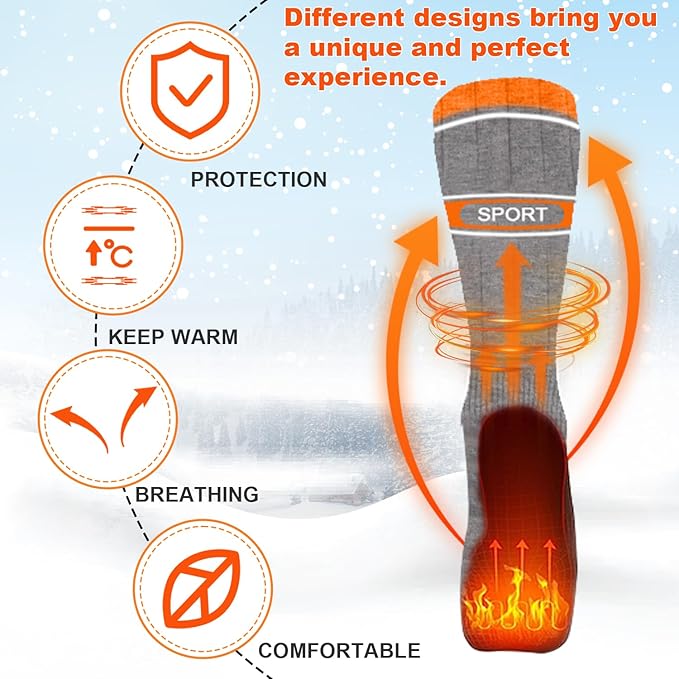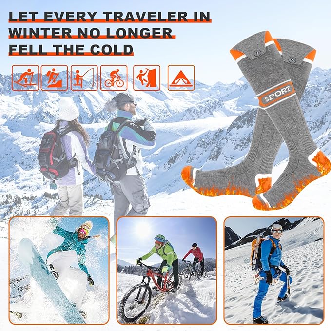 - Versatile Winter Companion Foot Warmer Socks: Our warm winter socks for women are versatile companions for all your winter activities. Whether you're skiing, ice skating, fishing, camping, hiking, cycling, or simply going about your daily routine, our battery heated socks guarantee to keep your feet warm and safe. Pair heated socks for men rechargeable with any winter shoes and embrace the winter season with confidence.