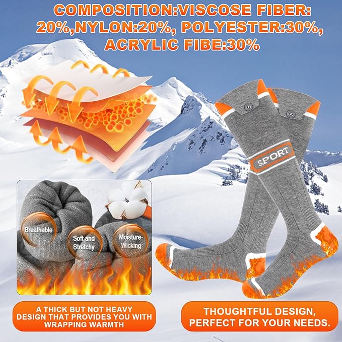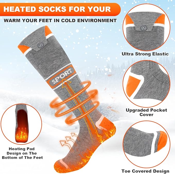 - Color : Grey+Orange+White heated socks for men rechargeable