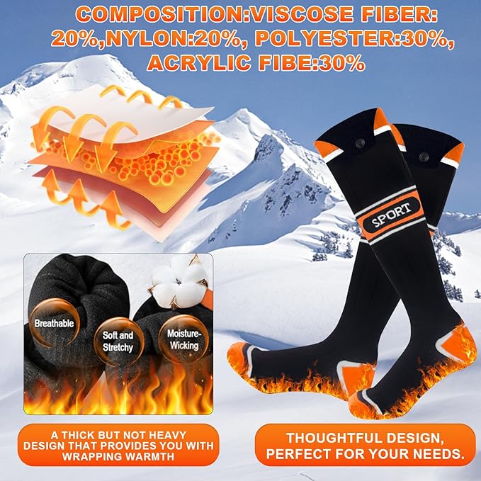 - Perfect Gift: Get ready to conquer the cold with our Rechargeable Heated Socks. Don't let chilly temperatures hold you back from enjoying your favorite outdoor activities. Invest in these socks and experience the ultimate comfort and warmth they offer. Stay cozy, stay active!
