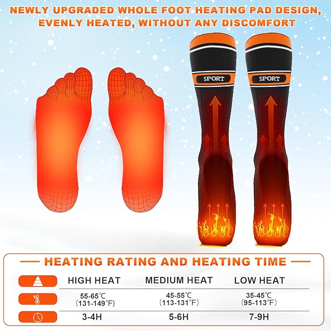 - Advanced Heating Technology: Utilizing advanced heating technology, these socks deliver consistent and reliable heat to your feet. Say goodbye to freezing toes and hello to ultimate comfort! The heating elements are strategically placed to evenly distribute warmth throughout the socks, ensuring maximum coziness.
