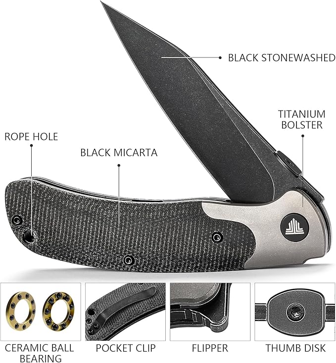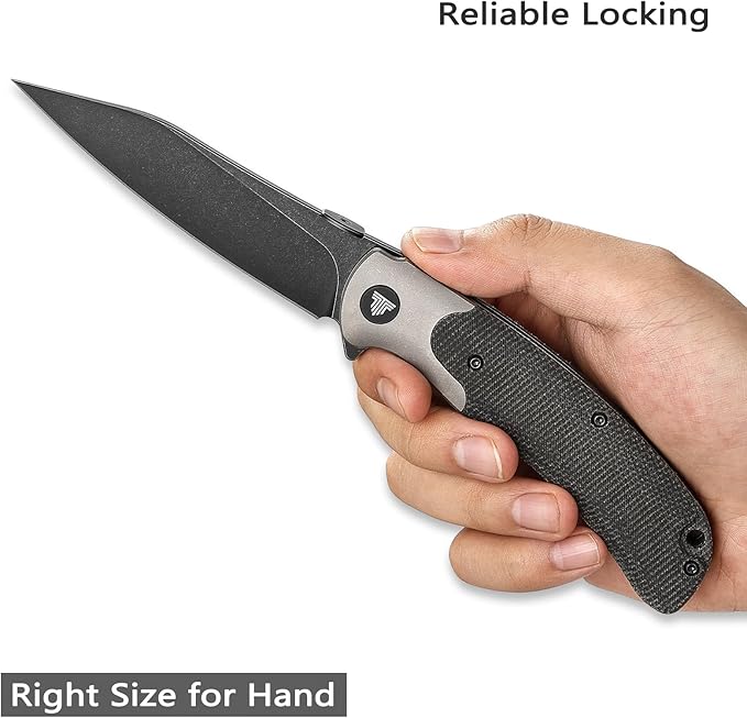 - Handle:Ti6Al4V bolster non-slip black micarta lightweight handle with pocket clip.