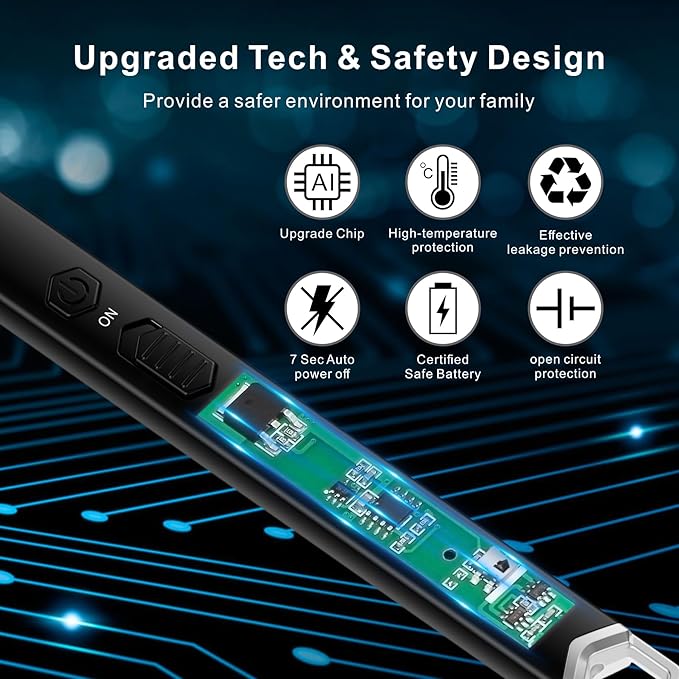 - 【WINDPROOF and FLAMELESS】Our candle lighter uses plasma arc windproof technology , strongly protect the electric pulse from being blown out by wind or wet weather. The candle lighter with fast heat sinking, less noise features. No flame, no butane, no hassle, they are perfect lighters tools for your all occasions.