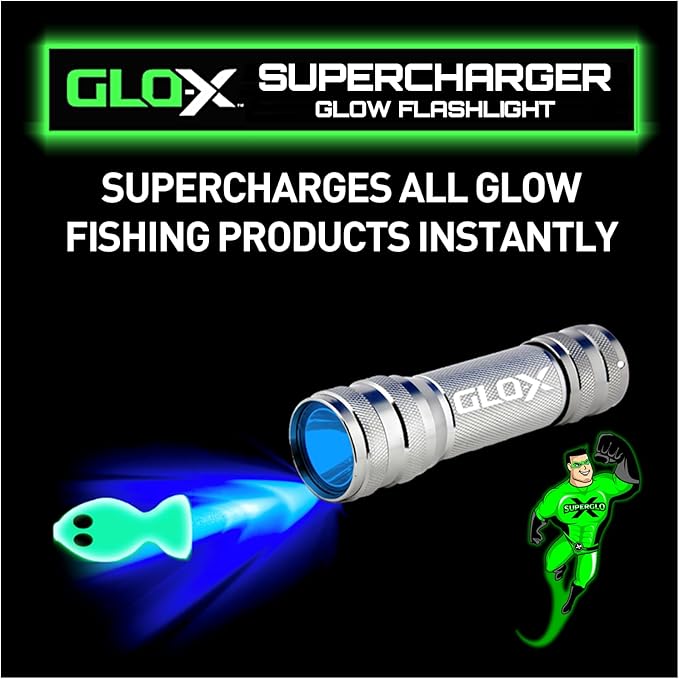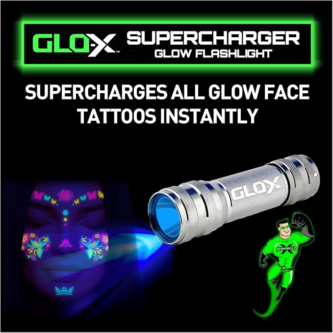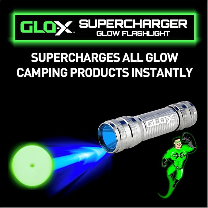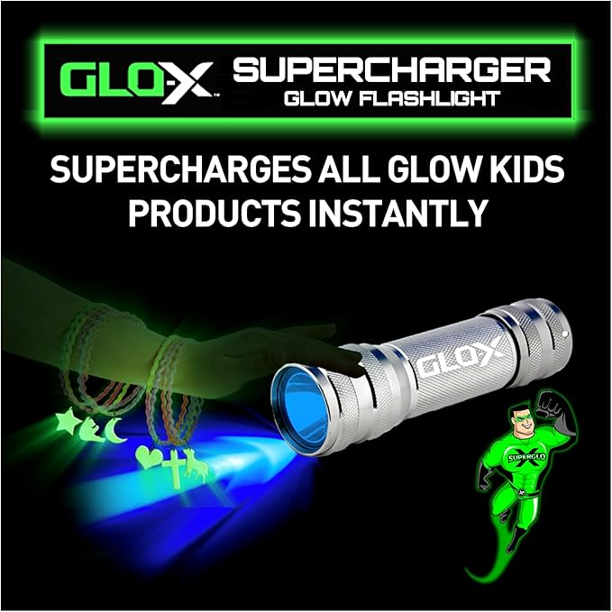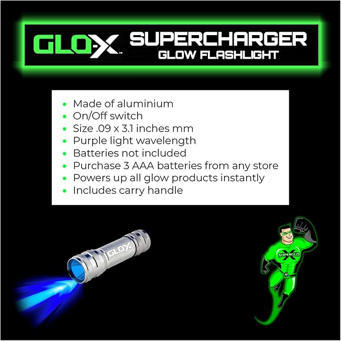GLO-X Supercharger UV Black Light LED Flashlight - Powerful High-Intensity Blacklight Charges All Glow in The Dark Products for Glow-in-The-Dark Paint, Charms, Fishing and Camping