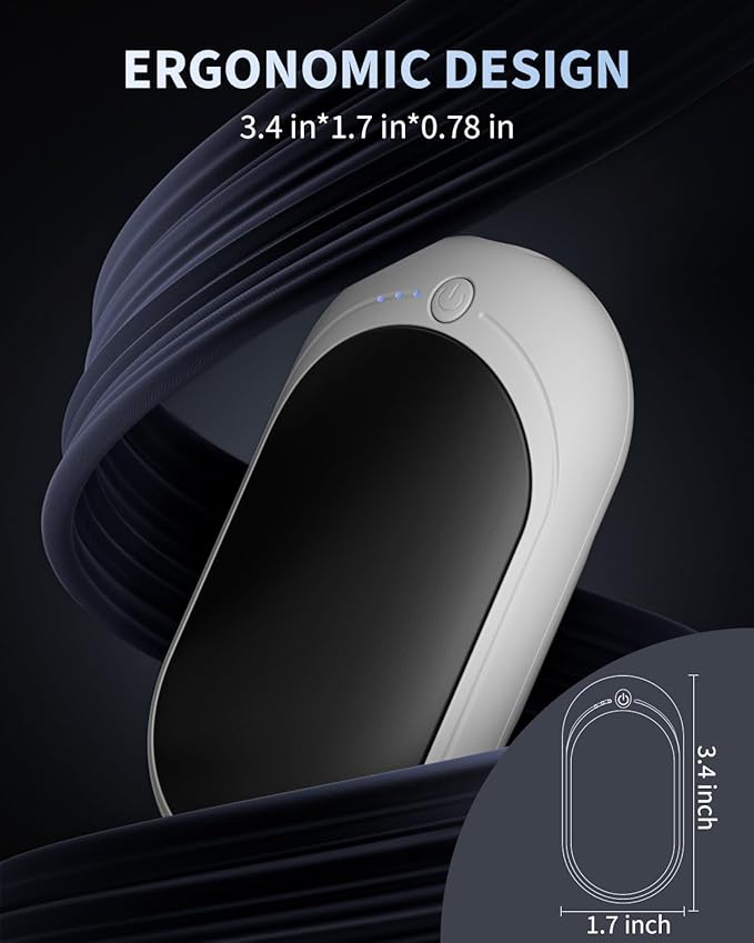 - Compact Design: Our Electric Hand Warmers are designed with portability in mind. Its slim and ergonomic design. The smooth, contoured edges ensure a comfortable grip, making it easy to hold and use for extended periods. Navigating the hand warmer's features is a breeze thanks to its intuitive and user-friendly controls.
