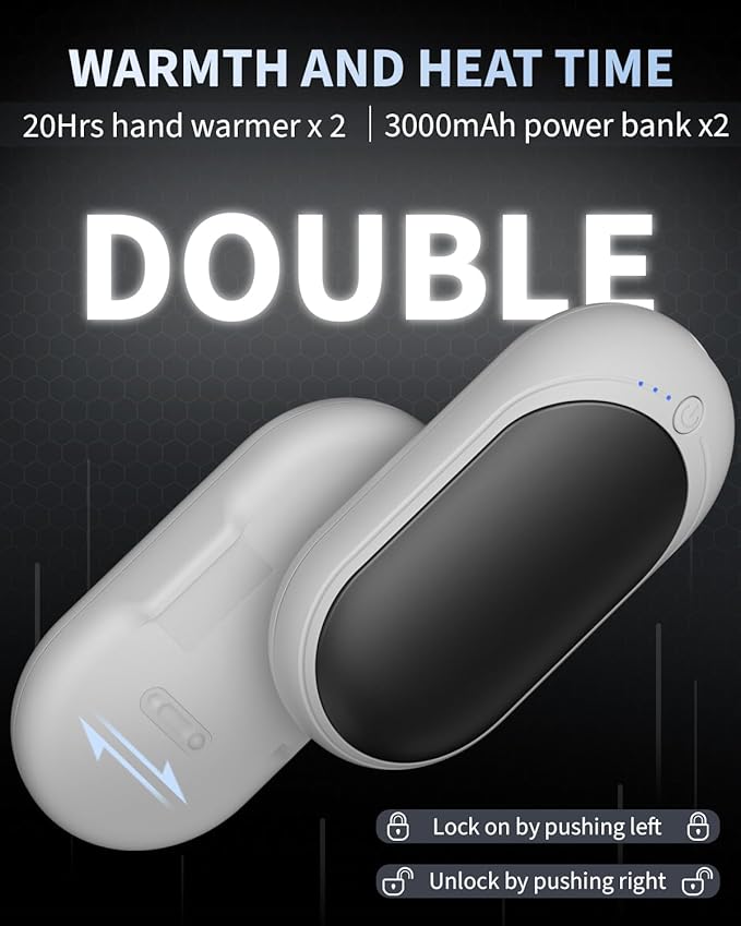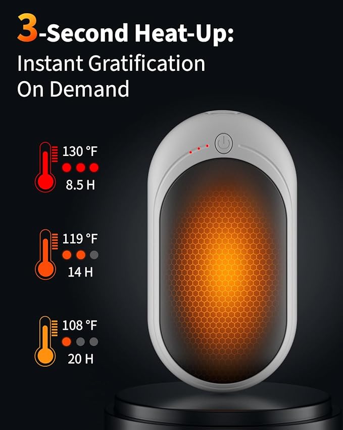 - Efficient Hand Warmer: Two-in-one design, you can share warmth with your loved ones. The 2023 upgraded portable handwarmers employ cutting-edge heating technology to generate consistent and soothing warmth in seconds. With 3 heat settings,