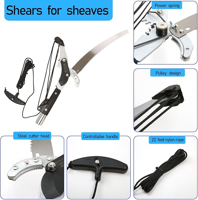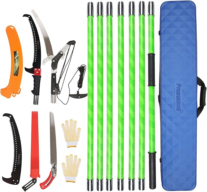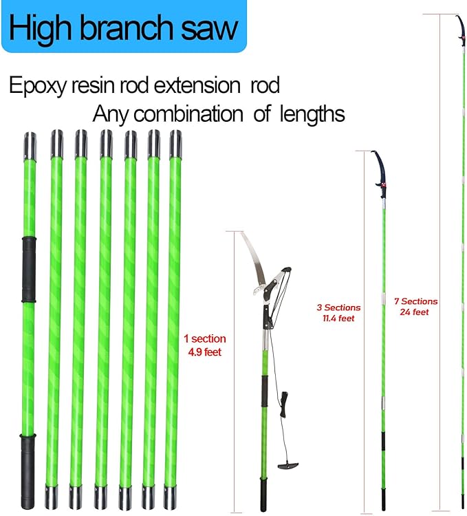 - <p>26 feet Trimmer pole saw includes 1 head rod and 7 thickened epoxy rod; The length can be adjusted as required. Once installed, you can trim even tall trees easily without climbing a ladder, and you can trim them on the ground without bending down or kneeling. It will be easier and safer to prune trees and shrubs this way.</p>